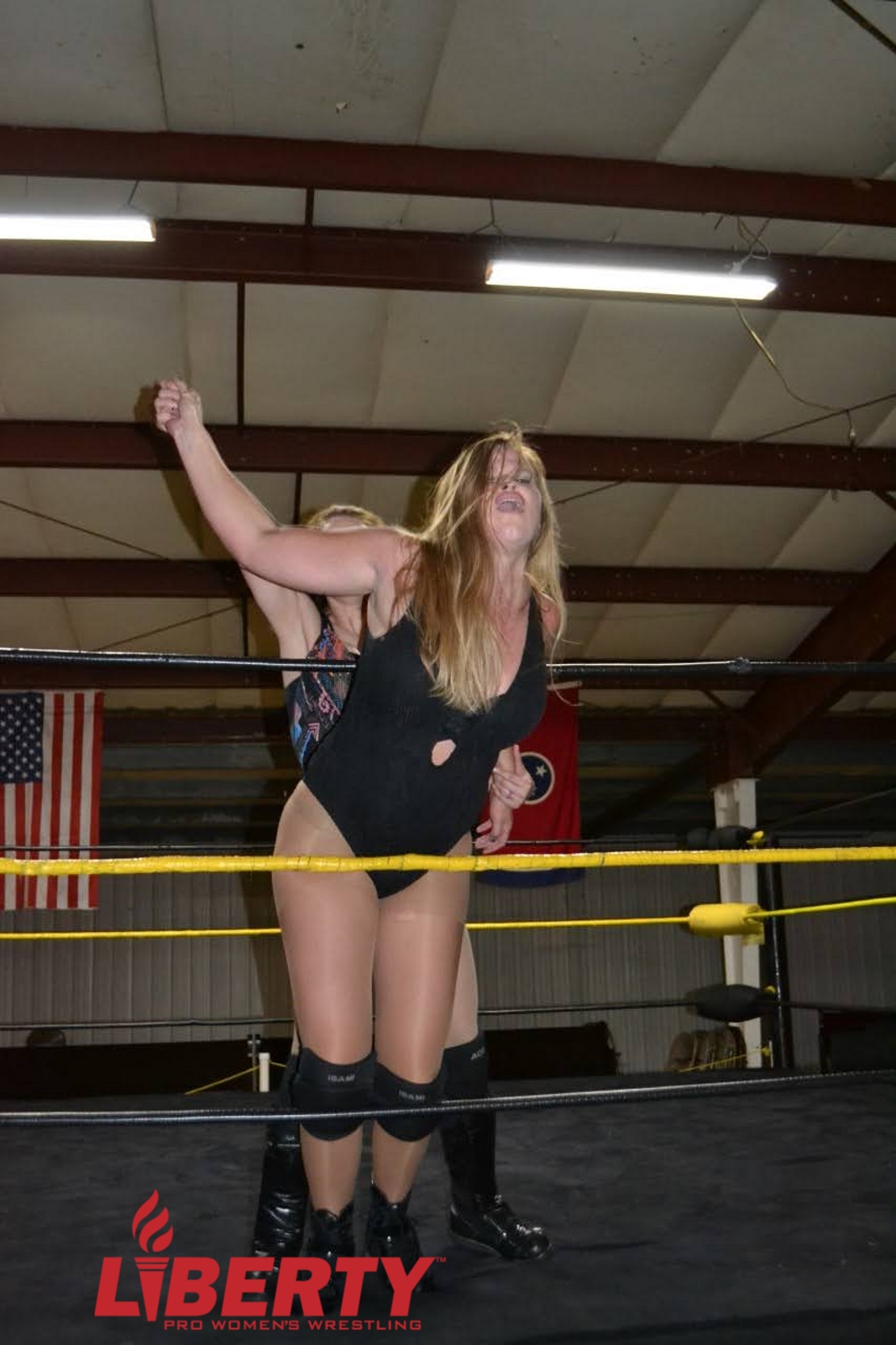 Little Bit takes on Nina for the second time, offering ten minutes of wrestling with a hint of meanness. (Big right hands. Running Bulldog into mat. Double hair pull. Snapmare. drop kick to back. Two hands full of hair. Body Scissors with Hair Pull. Choking with own hair. Running knee to face. Standing on hair. Slamming face into turnbuckle. Irish whip. Choking on middle.rope. Wrapping arms around top rope. Vicious hair pulling. Eye rake. Leg Drop. Camel clutch with hair pull. Standing on hands while hair pulling. Sitting full Nelson. Back rake. Stomach claw. Single leg Boston crab with hair pull. Surfboard. Finisher: Surfboard with two hands full of hair. submission.) The use of terms for holds and moves may vary.
