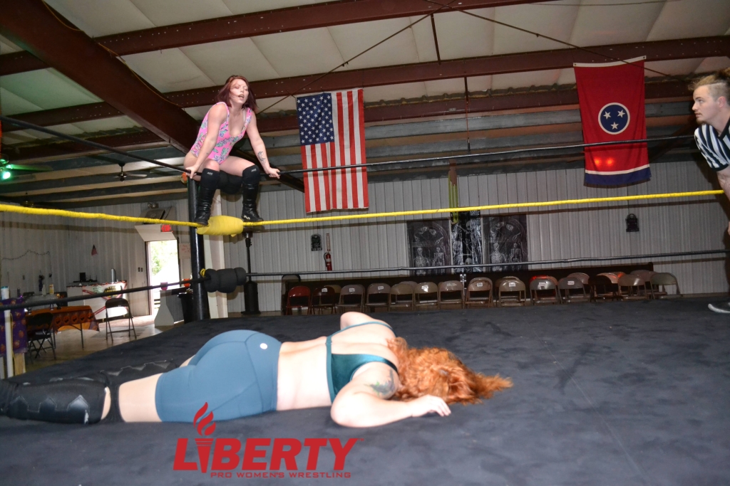 A one-fall match determines the SWF number one contender, with Autumn Mariee challenging Eliza Haze. The 10+ minute match sees two former SWF champions battling to earn a shot at Skylar Slice’s championship. (Pre-match interviews. Test of strength back and forth evenly matched. Waistlock. Armbar. Clothesline. Planting knee in back. Running clothesline into corner. Running Spear. Big right hand. Dropkick. Superkick. sleeper hold. Jawbreaker. DDT. Crossbody off the corner. Smashing face into turnbuckle. Spinebuster. Finisher: Sharpshooter. submission.) The use of terms for holds and moves may vary.